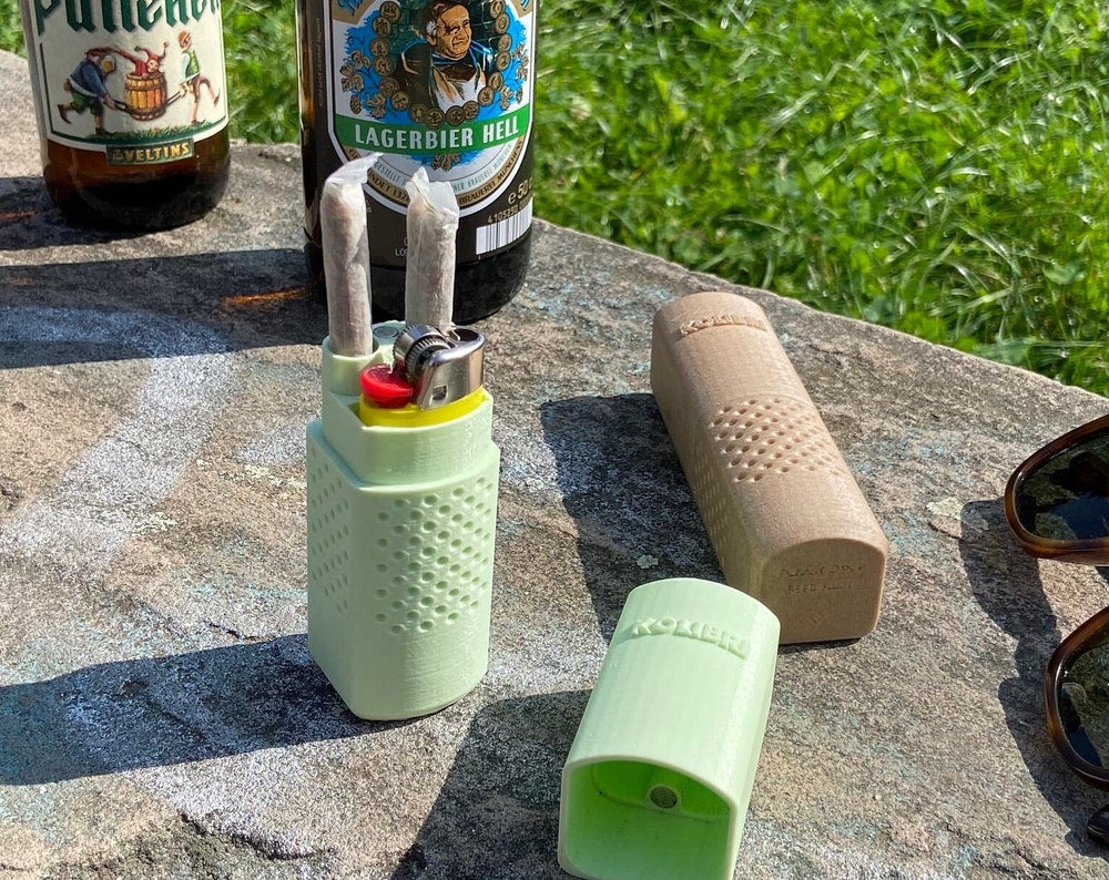 Every Kolibri is interchangeable with any other. Kolibris are sustainably 3D-printed from PLA, a plant-based material made from renewable resources such as corn and sugarcane, which is also food safe. Kolibris come in a compact size (approx. 3 × 3 × 11 cm), they fit easily into any pocket, eliminating the need to carry your entire stash. Its ergonomic design allows you to light up your joint without removing the lighter from the case, so you’ll never lose it again. Finished only half of your Joint? Just put it back into your Kolibri and safe it for later.